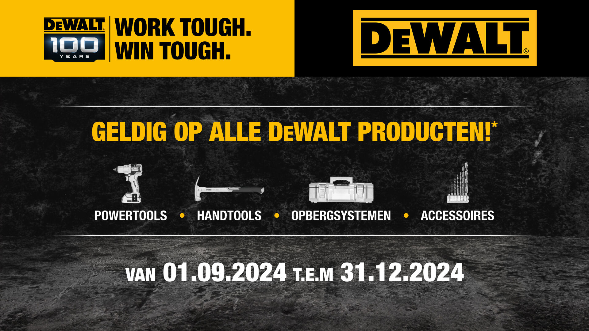 Profiteer nu van een exclusieve actie bij Claerbout! Bij aankoop van geselecteerde DEWALT producten ontvang je een gratis extra item. Dit is het perfecte moment om je gereedschapscollectie uit te breiden met het kwalitatieve en duurzame assortiment van DEWALT.
